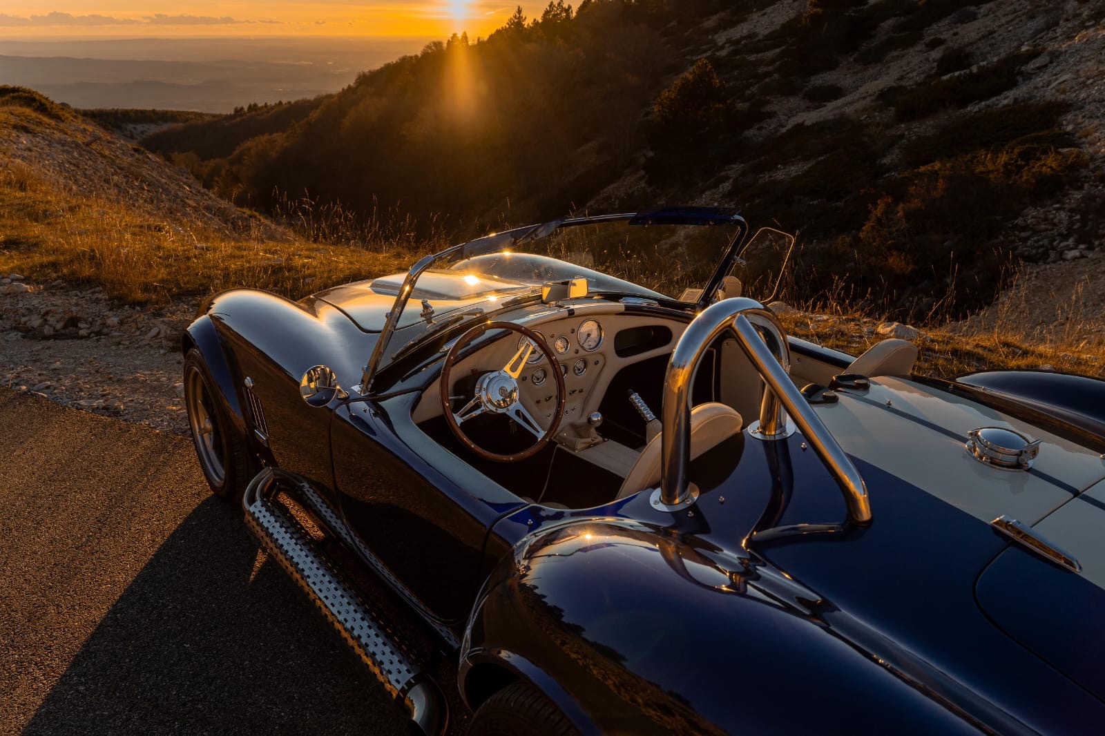 Imaginée dans les années 60 par Carroll Shelby, cette voiture de légende associe le châssis léger d’une AC anglaise à la puissance d’un V8 Ford, donnant naissance à l’un des roadsters les plus emblématiques de l’histoire automobile.